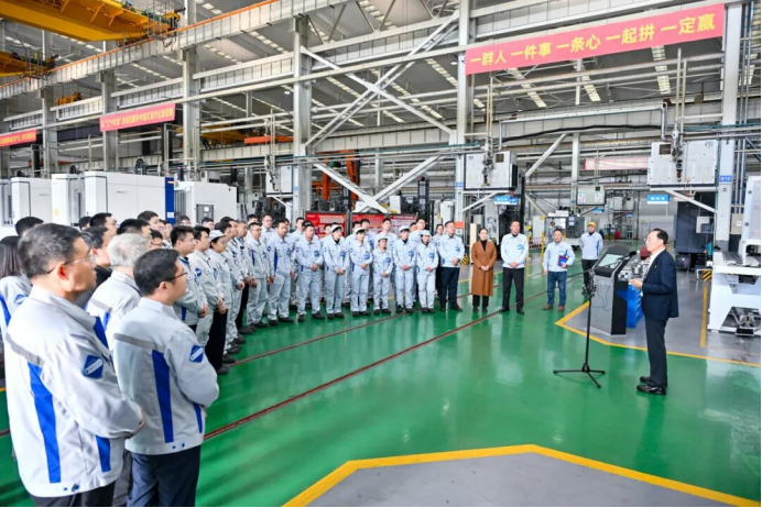 于旭波走進大連機床的生產車間,與基層黨員、員工面對面交流,介紹了“十四五”時期我國發展取得的重大成就,“十五五”時期經濟社會發展的重大意義,結合全會關于現代化產業體系和高水平科技自立自強的決策部署,解讀了全會關于全鏈條推動工業母機關鍵核心技術攻關的戰略舉措。
